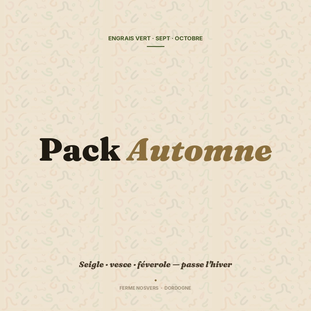 Semis de septembre à octobre. Sur sol libéré après les récoltes d’été. 50-80g/m². Incorporer en mars-avril avant montée en graines.